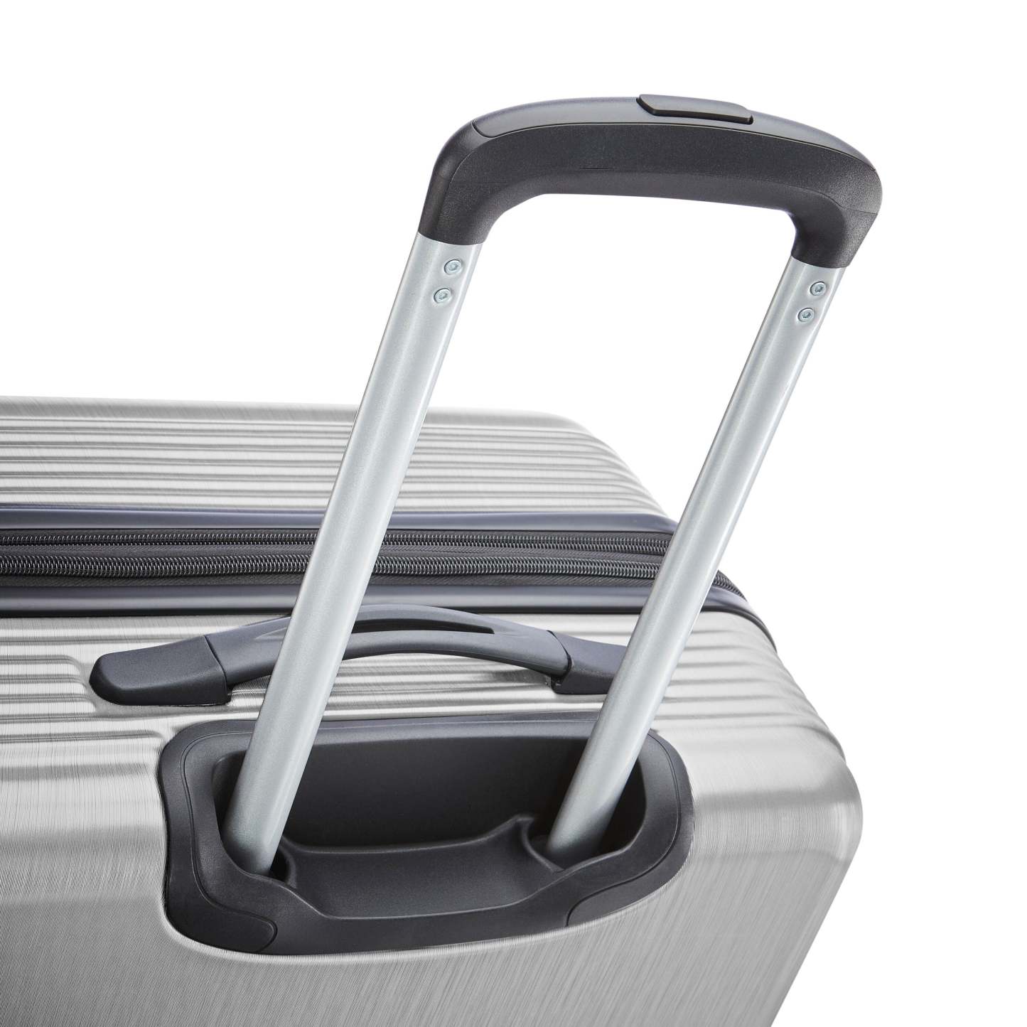- Push button multi stage handle system with retractable top and side carry handles