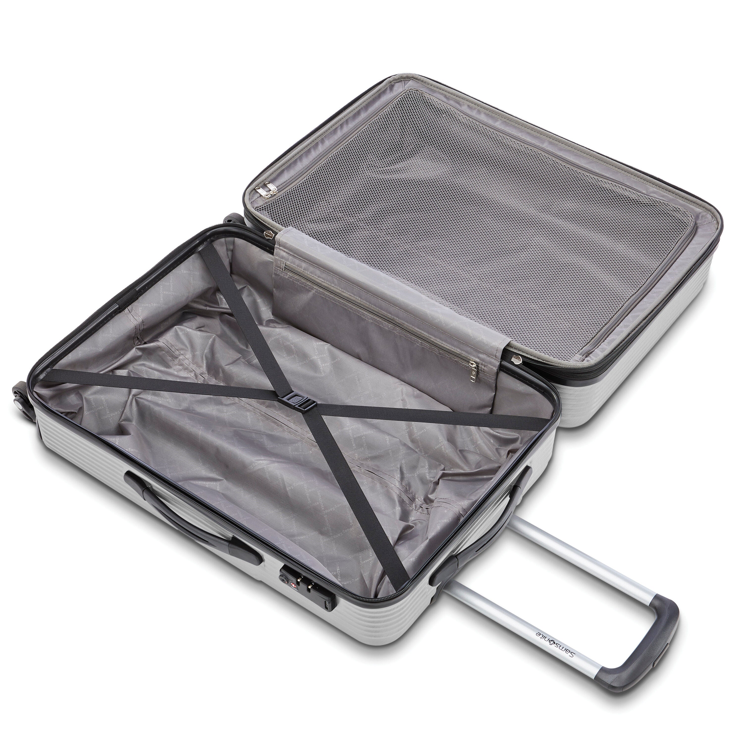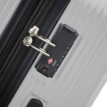 - TSA Approved 3-dial combination lock keeps belongings secure (only on large spinner)